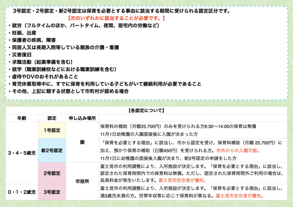 ※2号認定の定員は、その年の全体の在籍数により追加になることがあります。